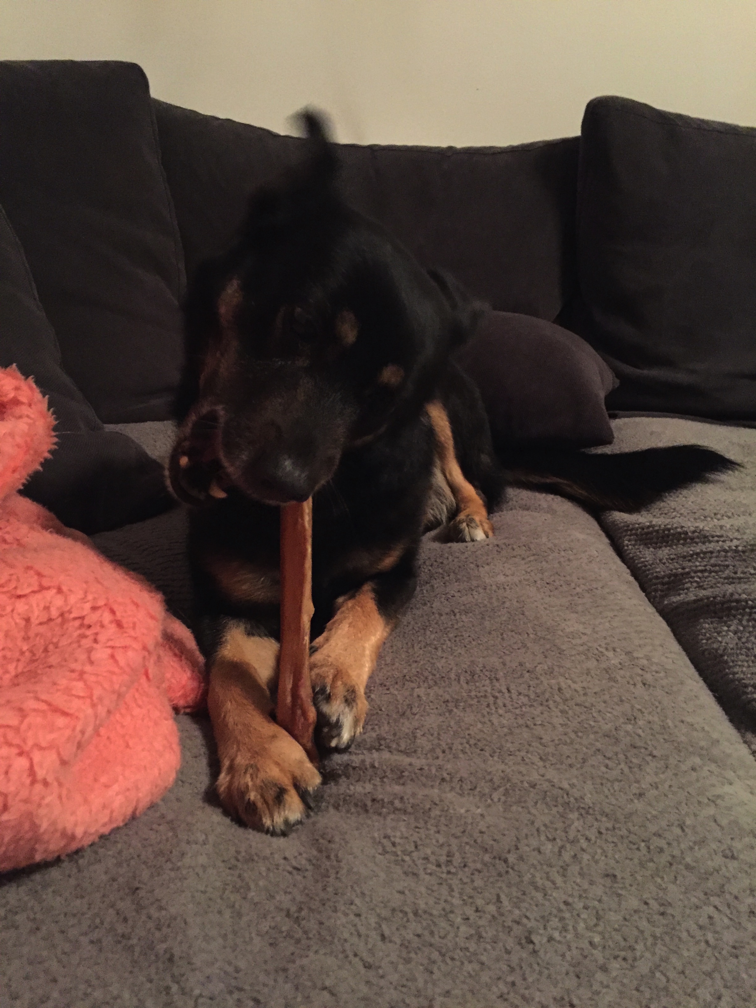 - ma dosyć specyficzny i intensywny zapach lubiany przez psy, który zaczyna być mocniej wyczuwalny przy ogryzaniu go przez psa